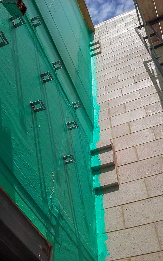 Below-grade waterproofing systems are not inherently airtight. Podium slabs, foundation walls, and grade transitions frequently interrupt air, water, and thermal control layers simultaneously.